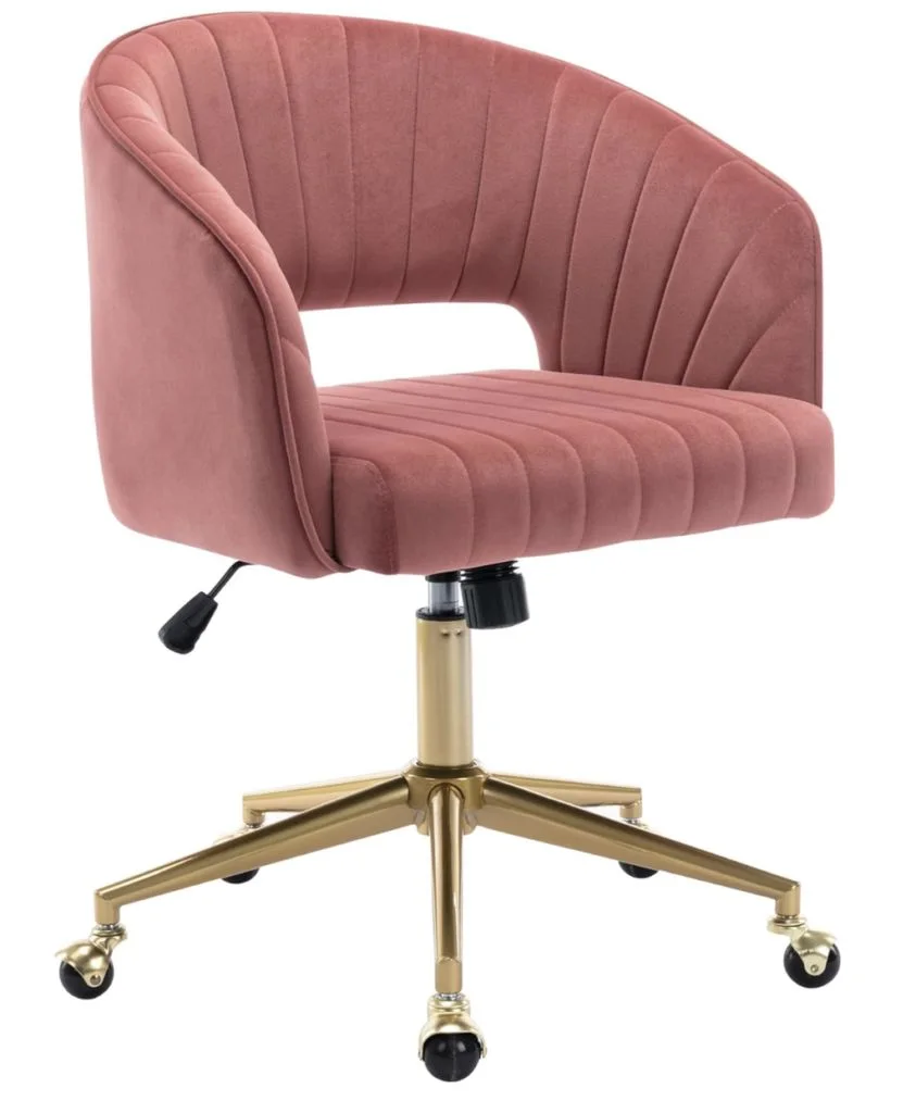 This chair’s gold metal base adds a touch of elegance, ensuring it fits seamlessly into various decor themes. Additionally, the adjustable height feature allows users to customize their seating position for optimal comfort, catering to different heights and uses.